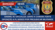 Sindicato Militar oficializa oficio contextado o PL 3065/25 que alteral royalties do Rio Previdencia pondo em risco a segurança do Rio